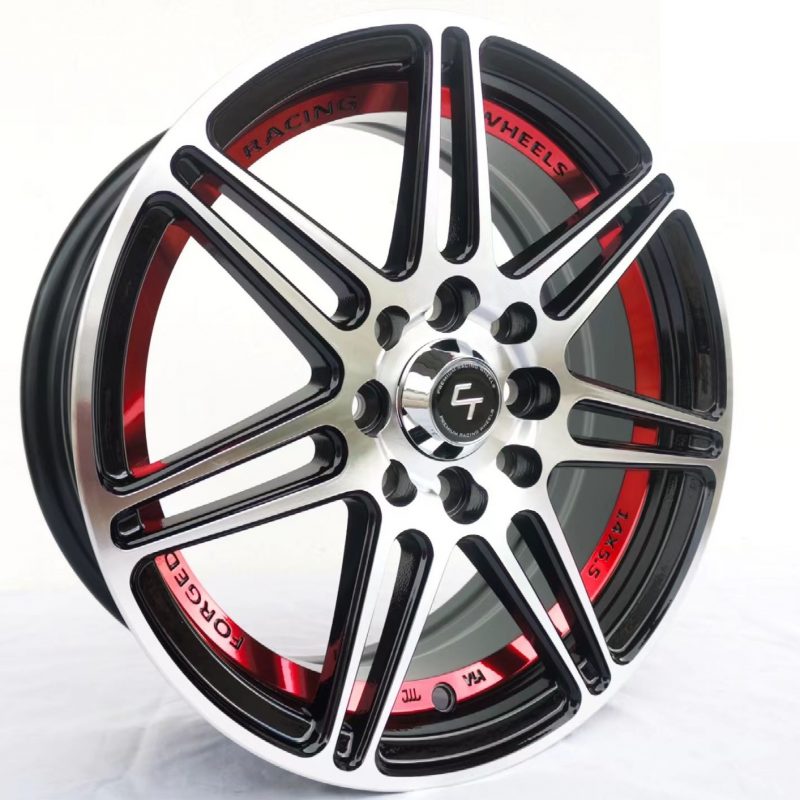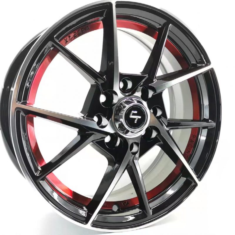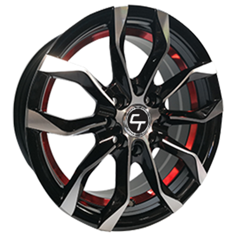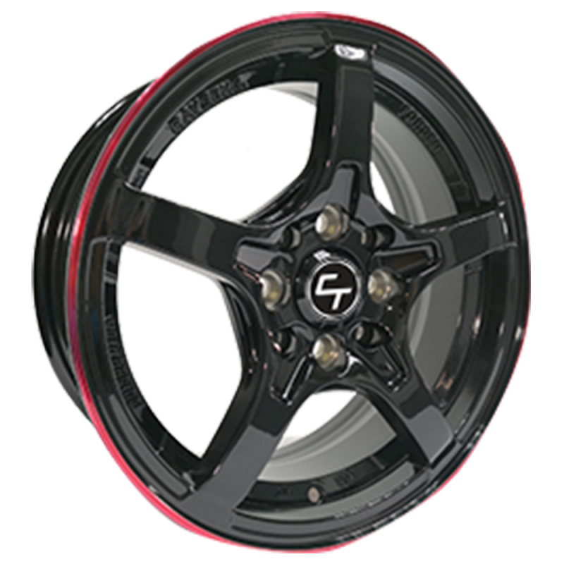 752 14X6 8X100/114.3 ET38 BLACK UNDER CUT WITH RED