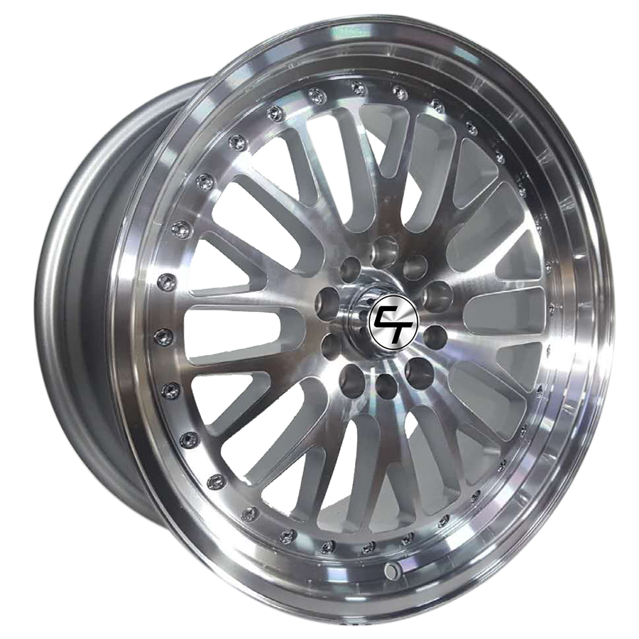ESM007 18X8 10X120/114.3 ET35 SILVER MACHINE FACE AND LIP WITH CHROME RIVET